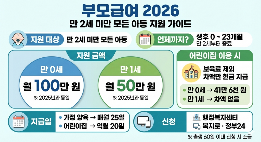 • 2026년 부모급여 → 작년과 동일, 인상 없음
